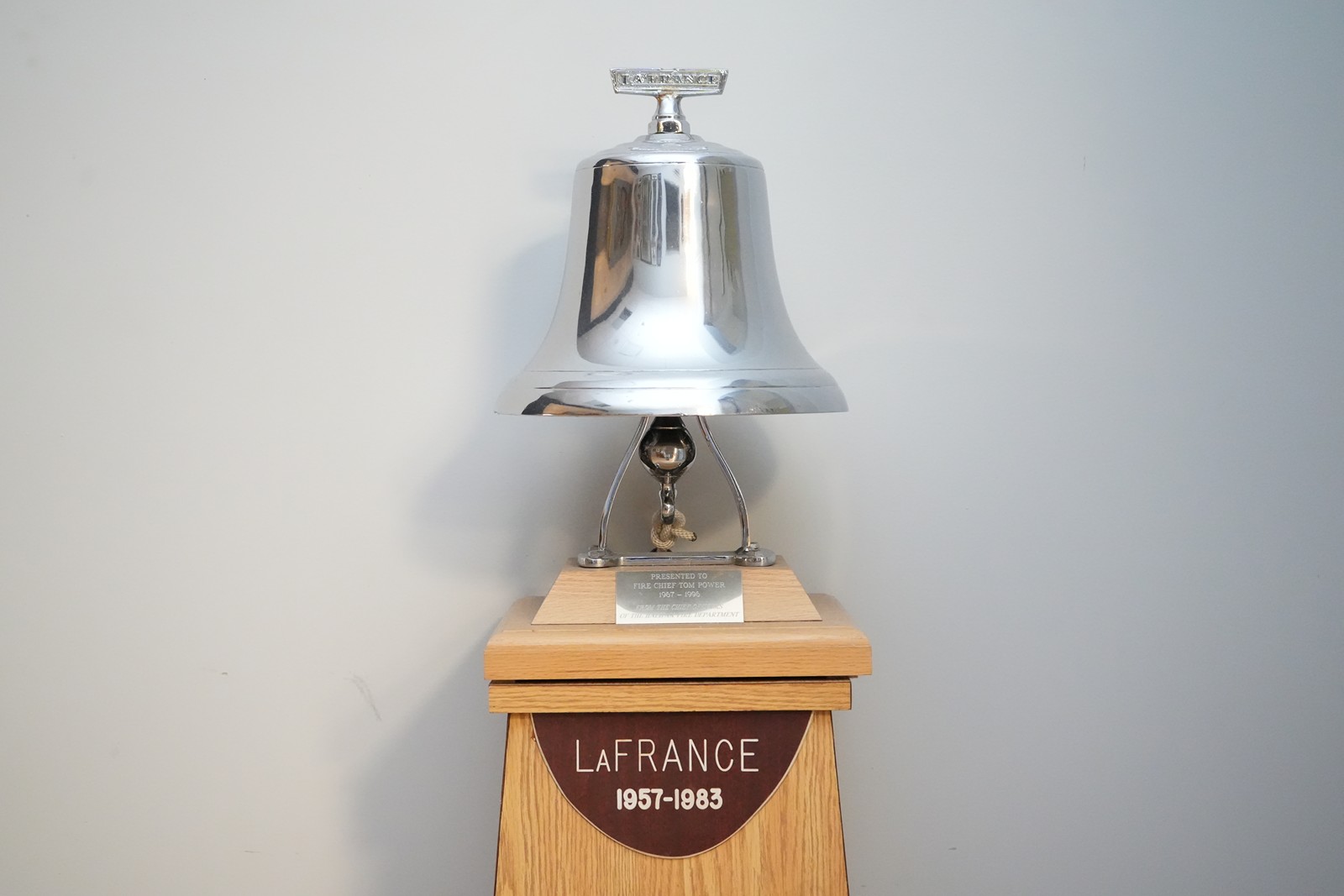 • In Halifax ,(not mentioned above), it has also been tradition to present retiring fire chief's with one of the department's fire bells, when available. This bell was presented to Chief Tom Power upon his retirement date in 1996. Tom generously donated the bell to the Halifax Fire Historical Society in 2020.